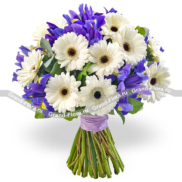 Музыка весны - букет из белых гербер и ирисов